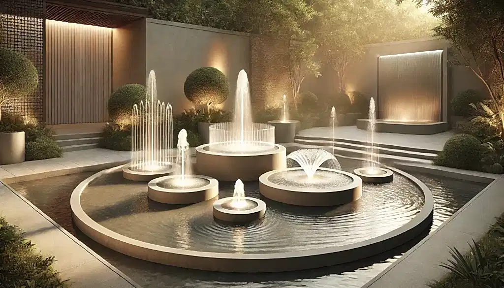 Büyük alanlarda, halkın etkileşime girmesi için su spreyleri kullanılabilir. Dinamik fiskiyeler, suyun renkli ışıklarla ve müzikle birleşerek etkileyici bir gösteri yapar.Ticari Alanlar ve Oteller